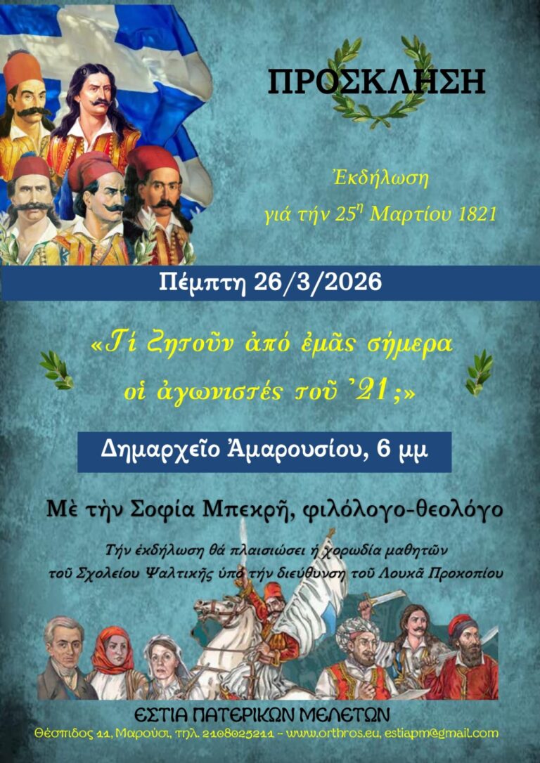 Σημ: Γιὰ ὅσους δὲν μποροῦν νὰ παρευρεθοῦν στὴν ἐκδήλωση θὰ μεταδοθῇ ζωντανὰ ἀπὸ τὸ κανάλι τῶν Ἐπάλξεων στὸ YouTube: https://youtube.com/live/ZOhI6Nwz43Q?feature=share