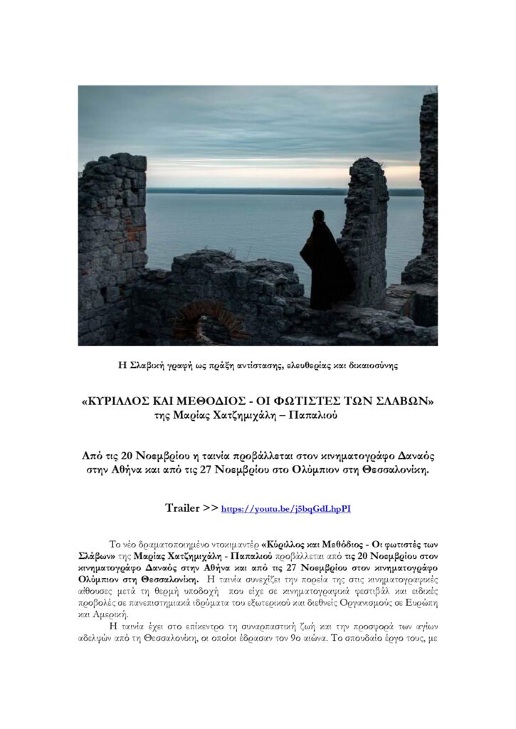 «ΚΥΡΙΛΛΟΣ & ΜΕΘΟΔΙΟΣ – ΟΙ ΦΩΤΙΣΤΕΣ ΤΩΝ ΣΛΑΒΩΝ»