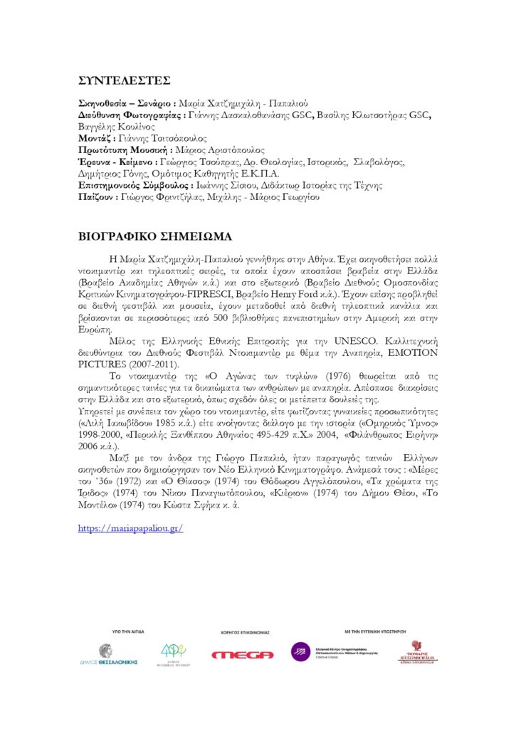 Σκηνοθεσία – Σενάριο: Μαρία Χατζημιχάλη – Παπαλιού